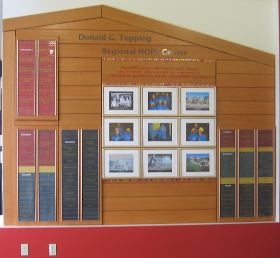 In coordination with the main donor wall, room signage and donor dedication was designed for each individual room.